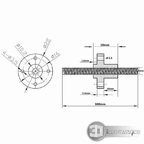 3D Innovations CHPSS548-2 3D Printer Trapezoidal Screw Thsl-300-8D Lead Screw Dia 8mm Thread 8mm Length 300mm with Copper Nut (Length: 300mm)