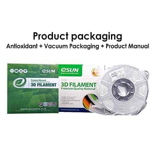 • 【Vacuumed Sealed Packaging】Net Weight: 1KG. eSUN filament comes in a sealed vacuum bag with a desiccant bag to keep it dry and keep out dust and foreign particles, prevent nozzle jams and yield smooth 3D models.