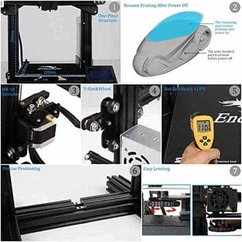 • Resume Print: Ender 3 has the ability to resume printing even after a power outage or lapse occurs.